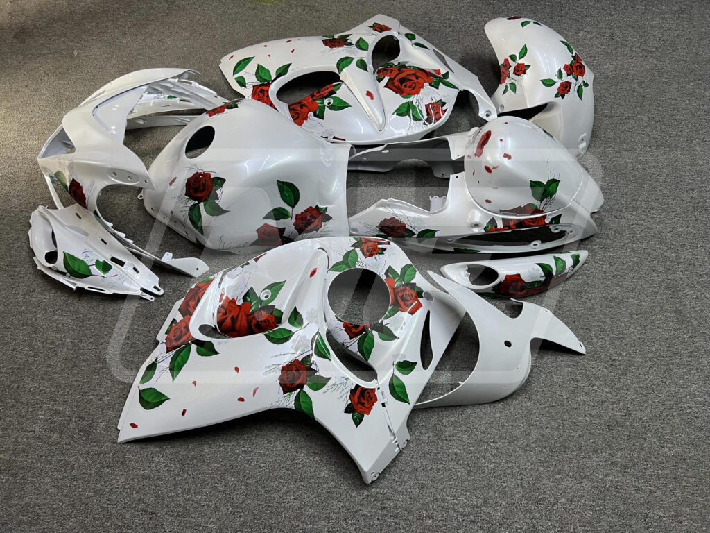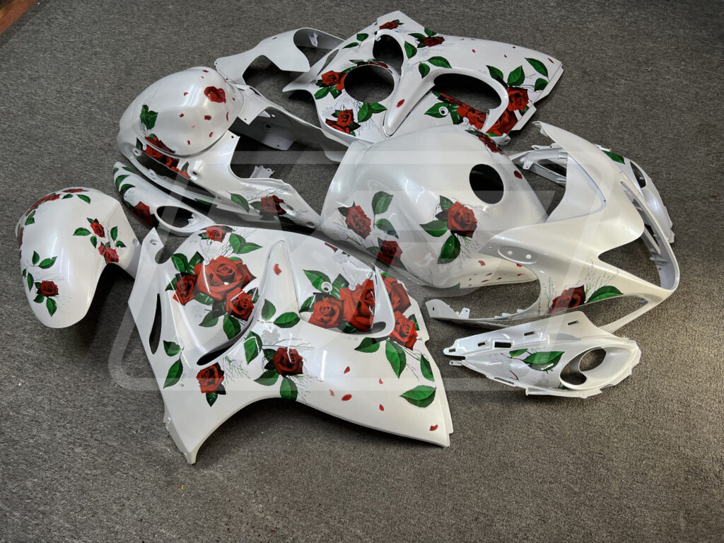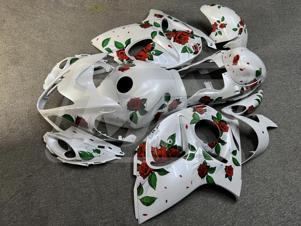 Suzuki GSXR 1300 2008-2020 Gloss Pearl White With Roses ABS Fairings | Monster Fairings