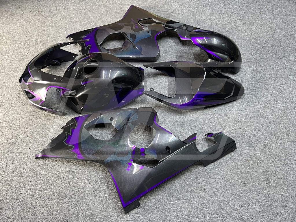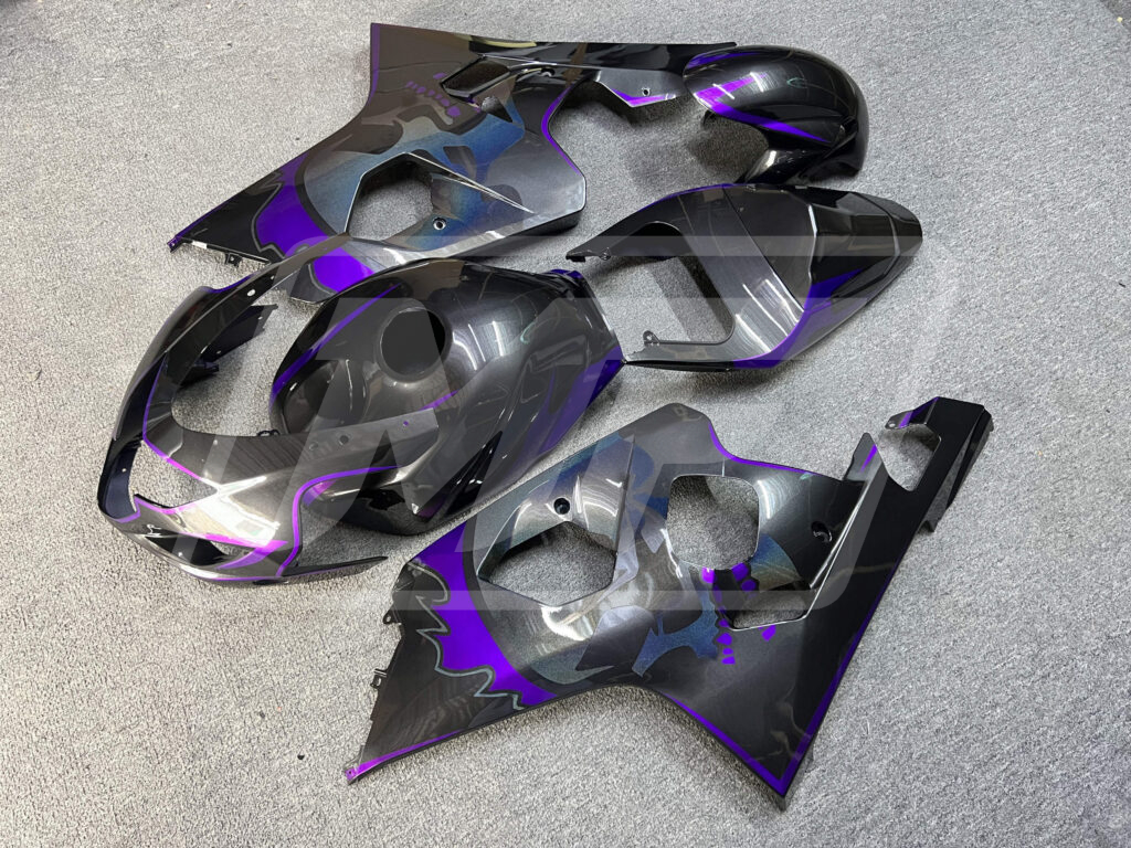 Discover the Suzuki GSXR 600-750 2000-2075 Gloss Metallic Black & Purple With Custom Skull ABS Fairings | Monster Fairings—your go-to upgrade for unmatched style, aerodynamics, and precision fitment. Perfect for sportsbike enthusiasts, these Suzuki GSXR 600-750 Fairings refresh your ride with a vibrant, head-turning Gloss Metallic Black & Purple With Custom Skull finish, offering OEM-equivalent style and durability that's track-ready or street-smart.