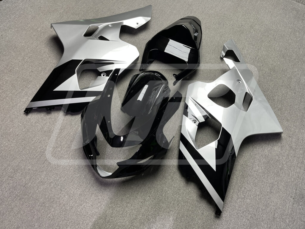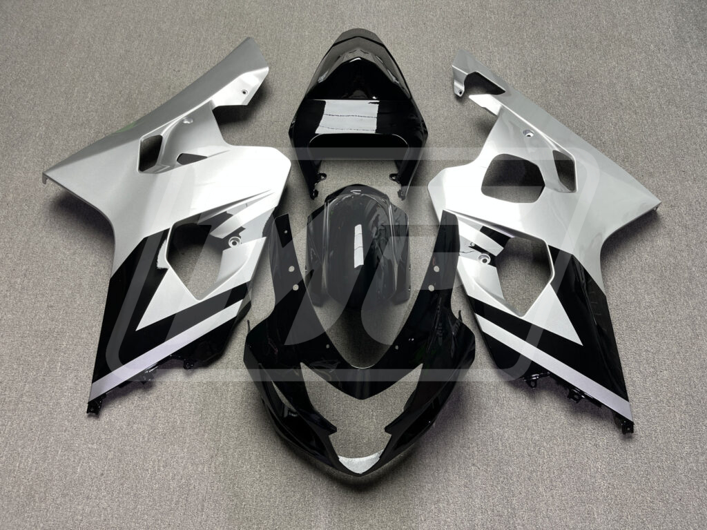 Discover the Suzuki GSXR 600-750 2004-2005 Gloss Silver & Black OEM Style ABS Fairings | Monster Fairings—your go-to upgrade for unmatched style, aerodynamics, and precision fitment. Perfect for sportsbike enthusiasts, these Suzuki GSXR 600-750 Fairings refresh your ride with a vibrant, head-turning Gloss Silver & Black OEM Style finish, offering OEM-equivalent style and durability that's track-ready or street-smart.