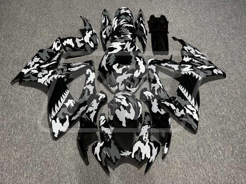 Gloss Gray Camo Shark ABS fairings for Suzuki GSXR 600 - 750 2006 - 2007 - premium OEM fit kit by Monster Fairings