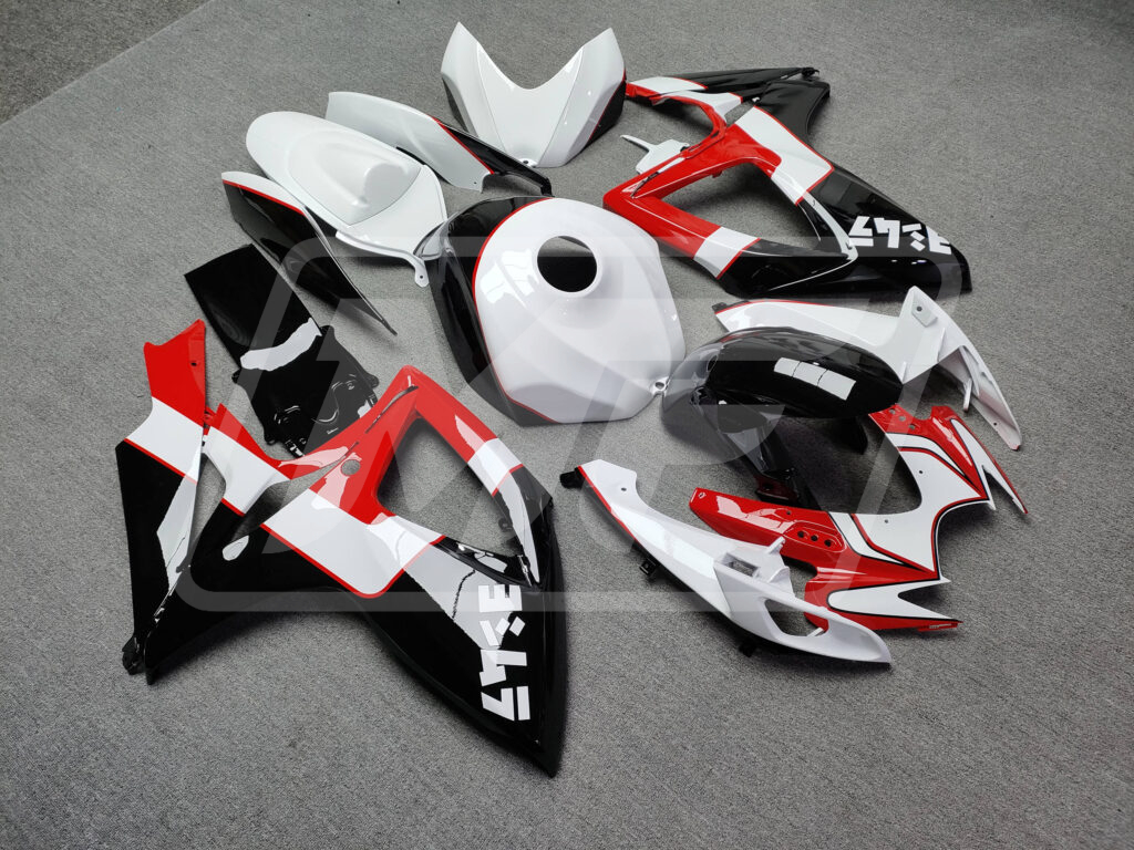 Suzuki GSXR 600-750 2006-2007 Gloss White & Black With Red ABS Fairings | Monster Fairings