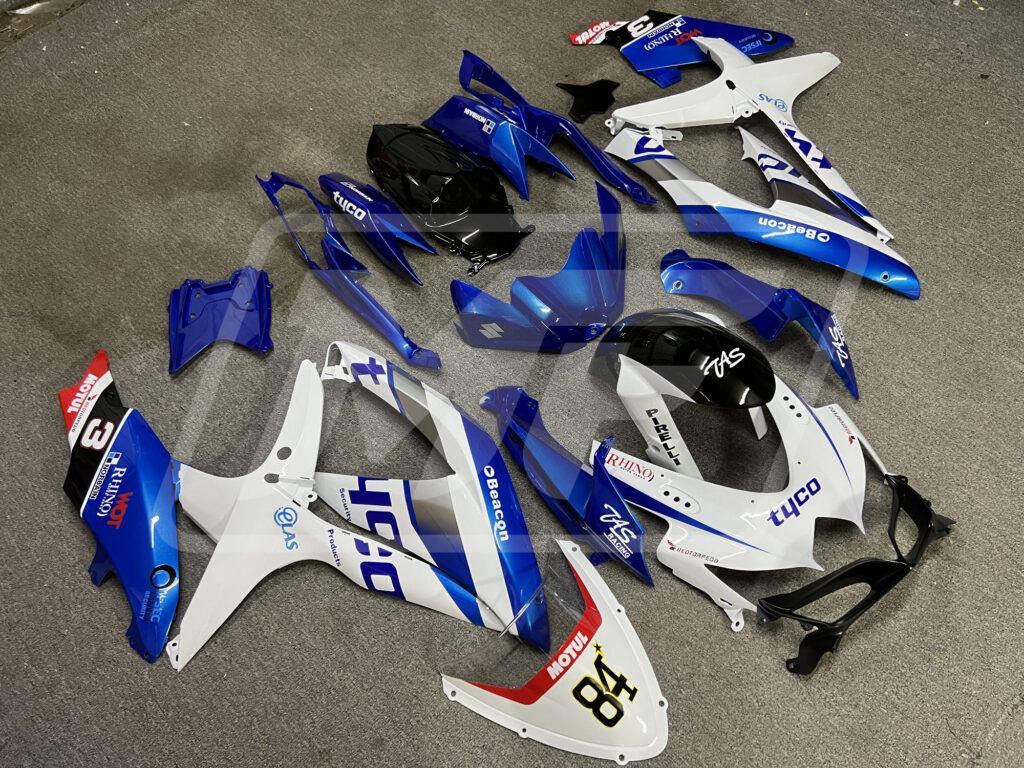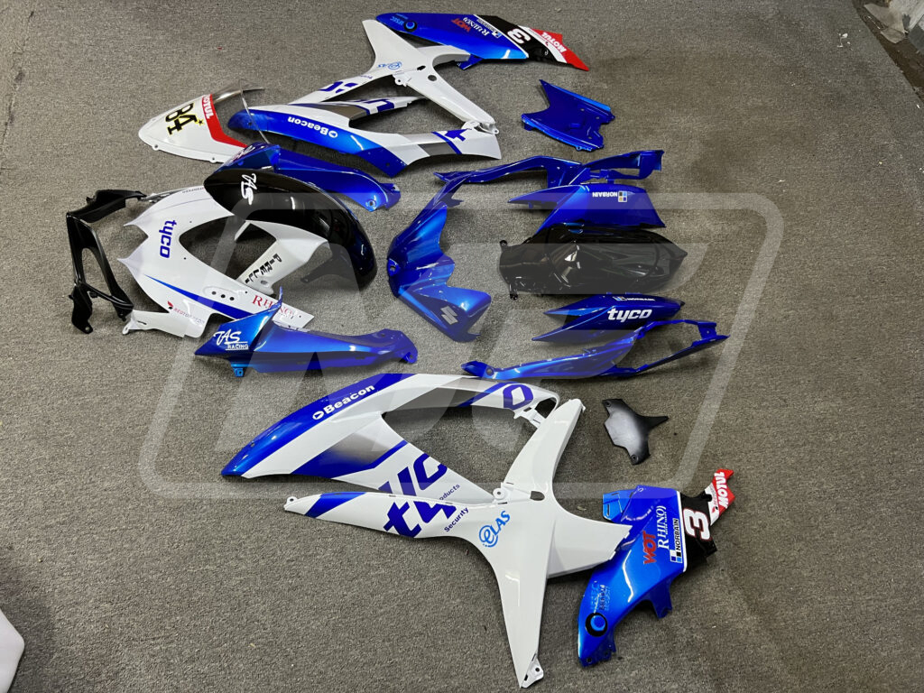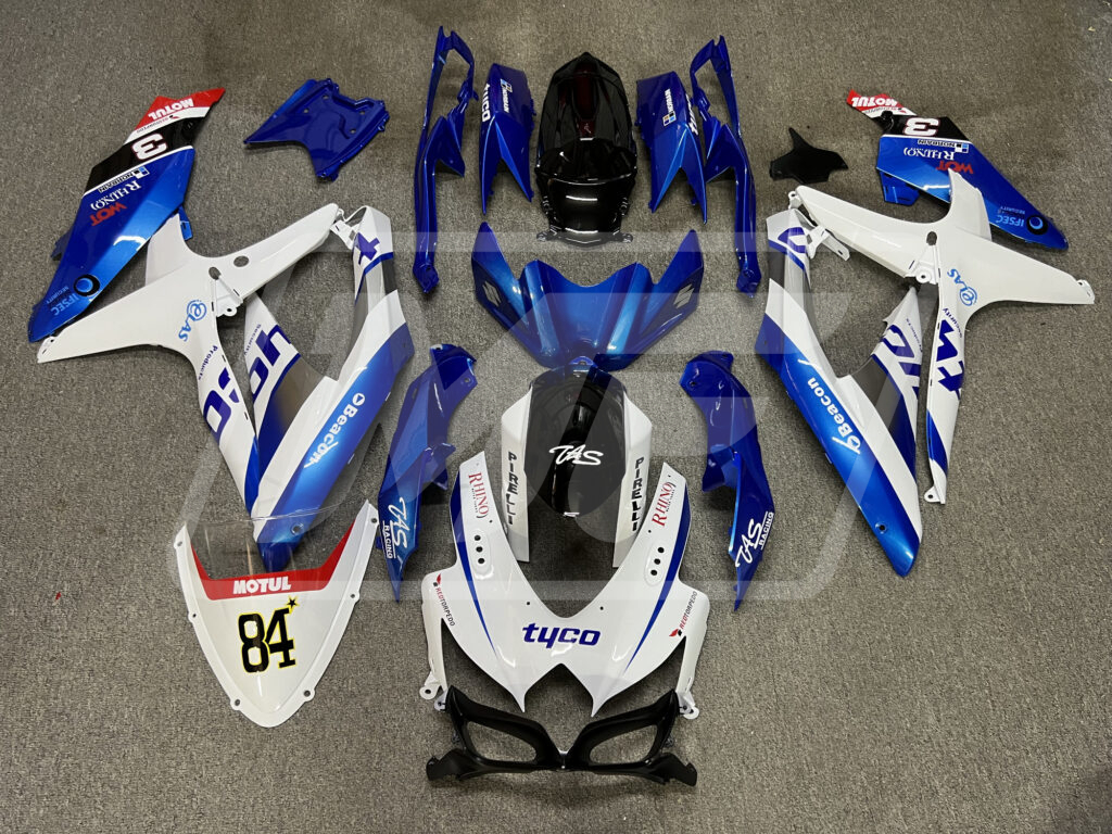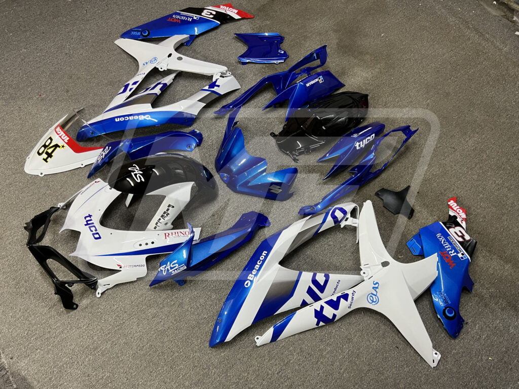 (IN STOCK TX) Suzuki GSXR 600-750 2008-2010 Gloss White & Blue with Red TYCO ABS Fairings | Monster Fairings