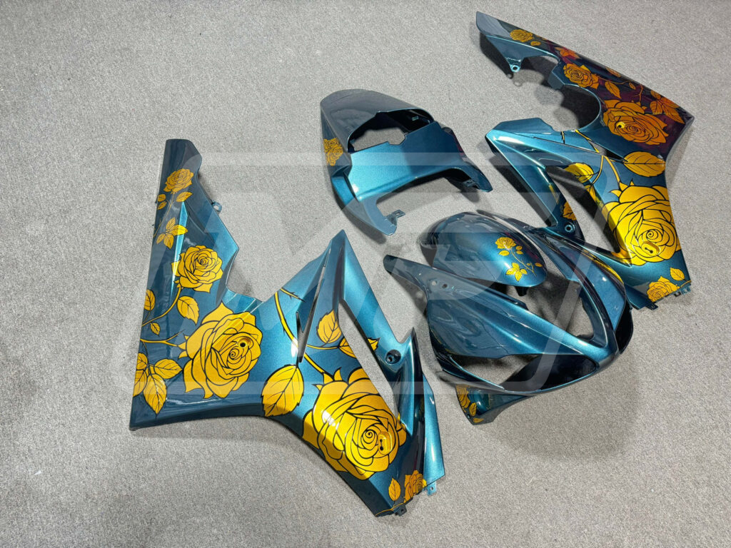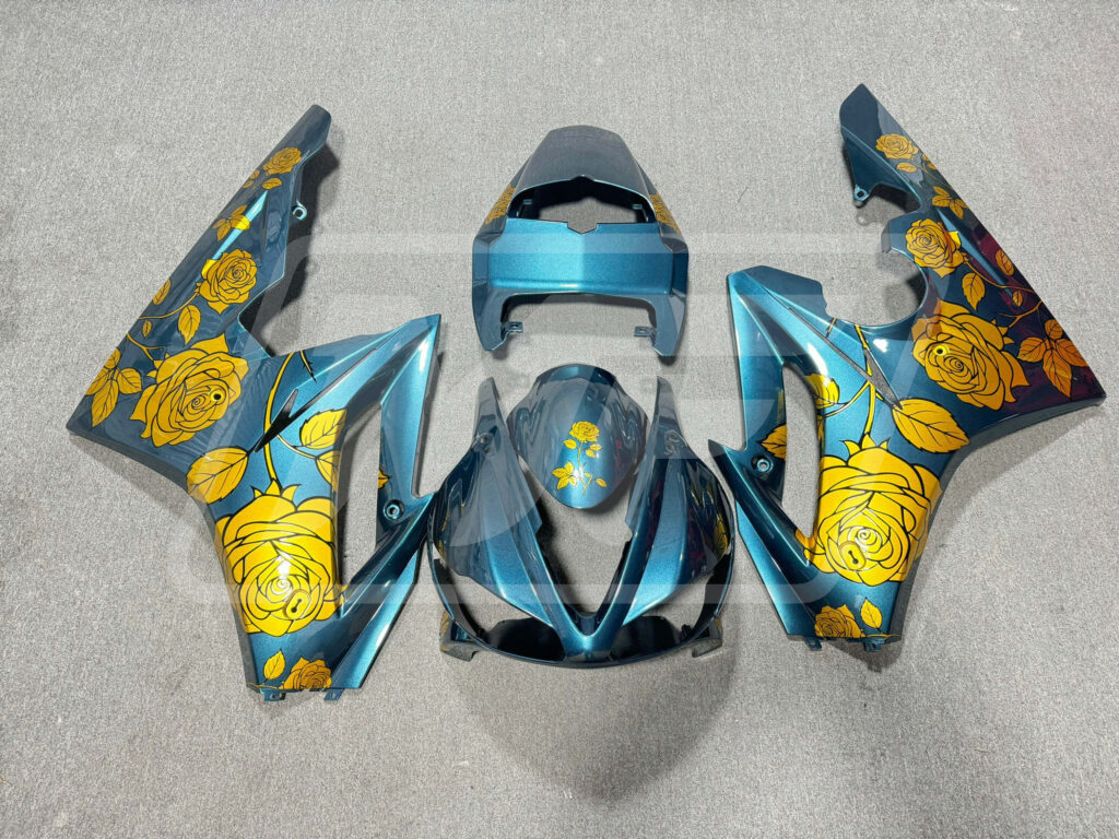 Triumph Daytona 675 2009-2012 Gloss Light Blue with Gold Roses ABS Fairings | Monster Fairings