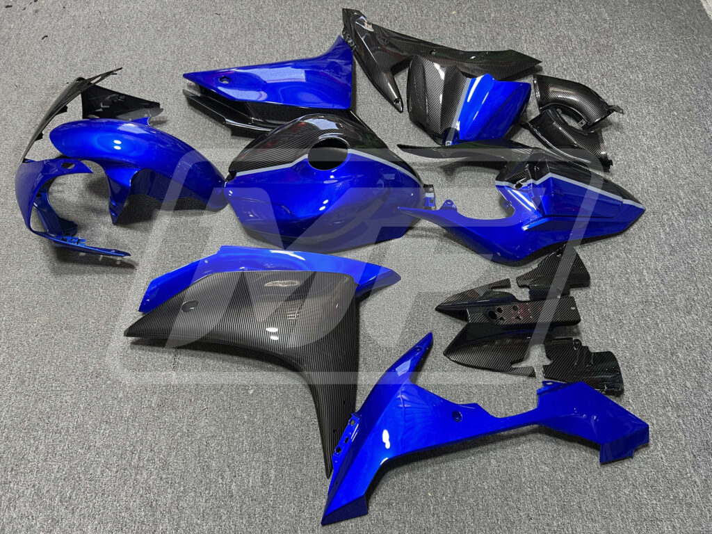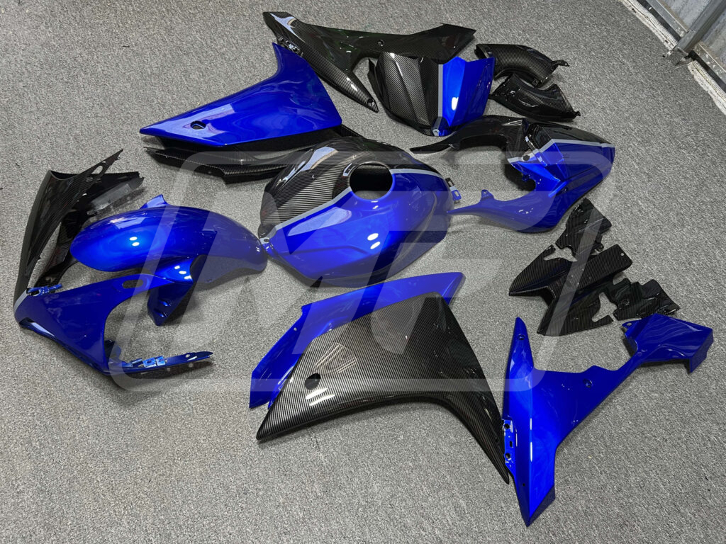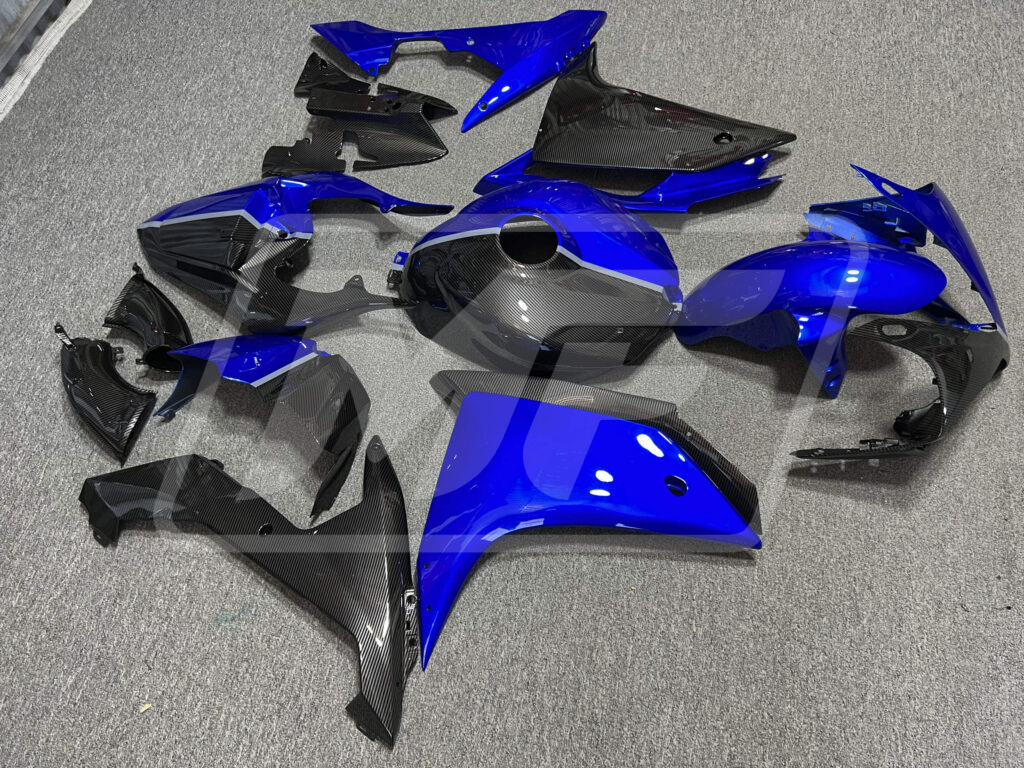 Yamaha R1 2007-2008 Gloss Carbon Fiber Style & Blue ABS Fairings | Monster Fairings