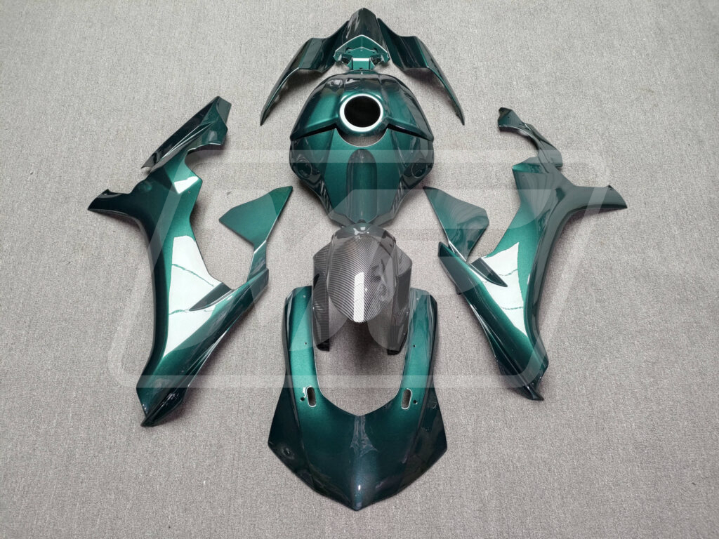 Yamaha R1 2015-2019 Gloss Green with Carbon Fiber Style ABS Fairings | Monster Fairings