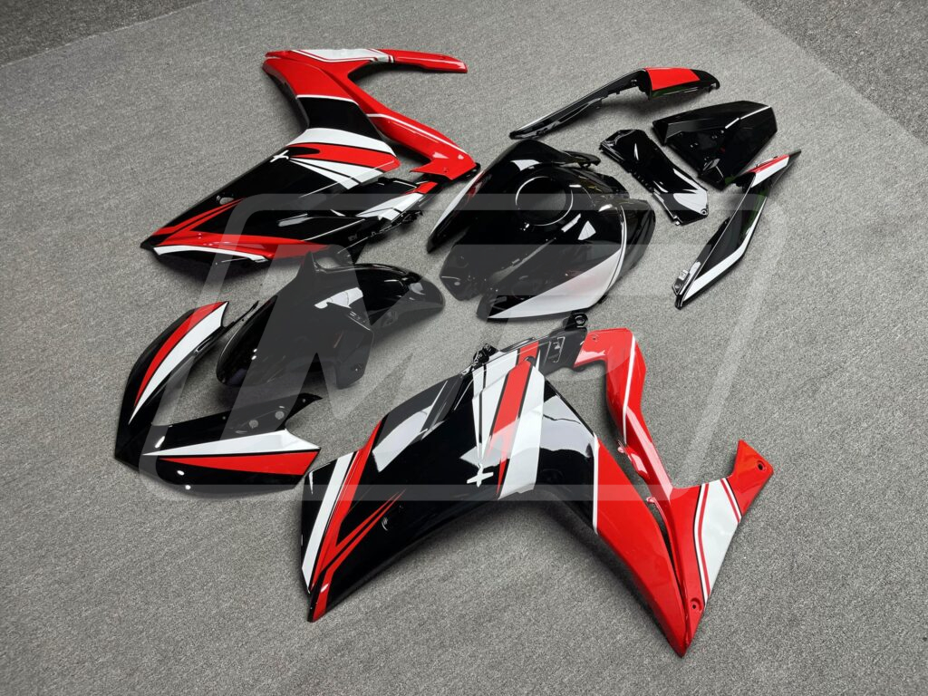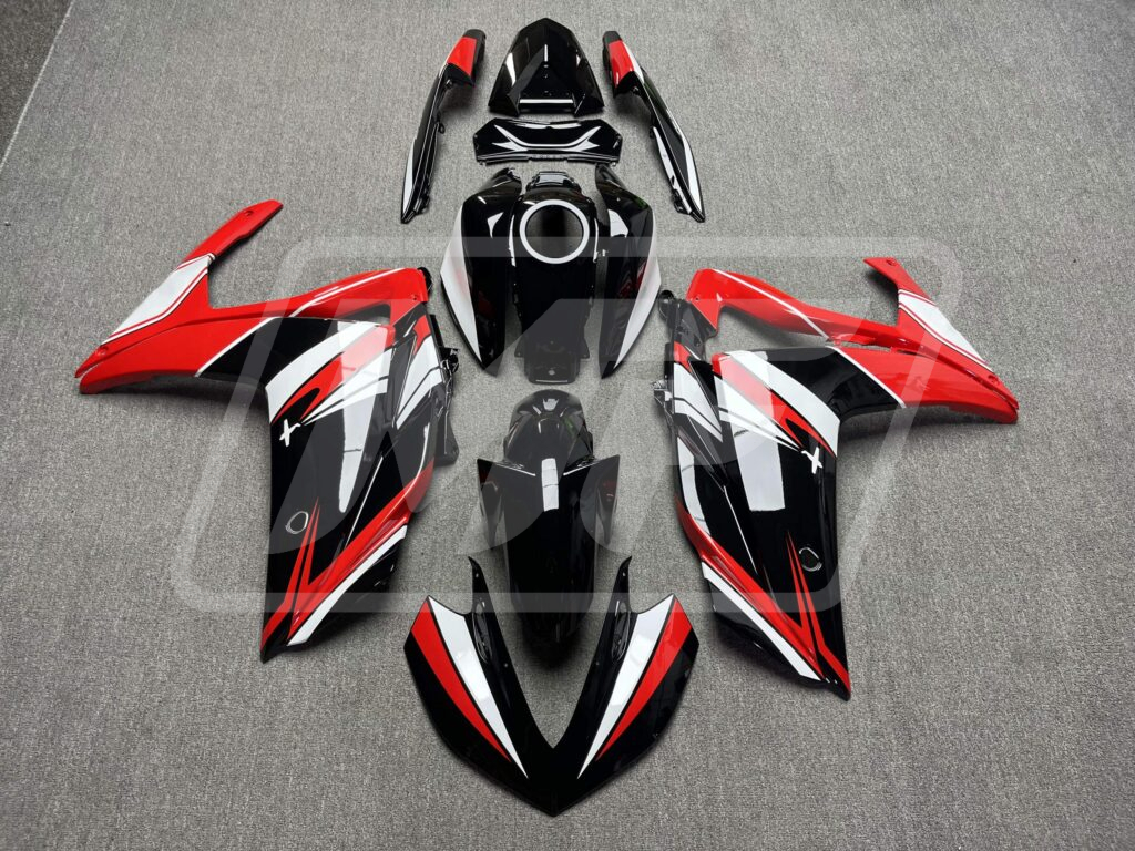 Yamaha R3 2014-2018 Gloss Black & Red with White ABS Fairings | Monster Fairings