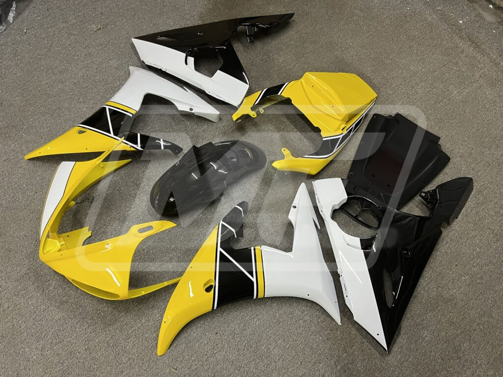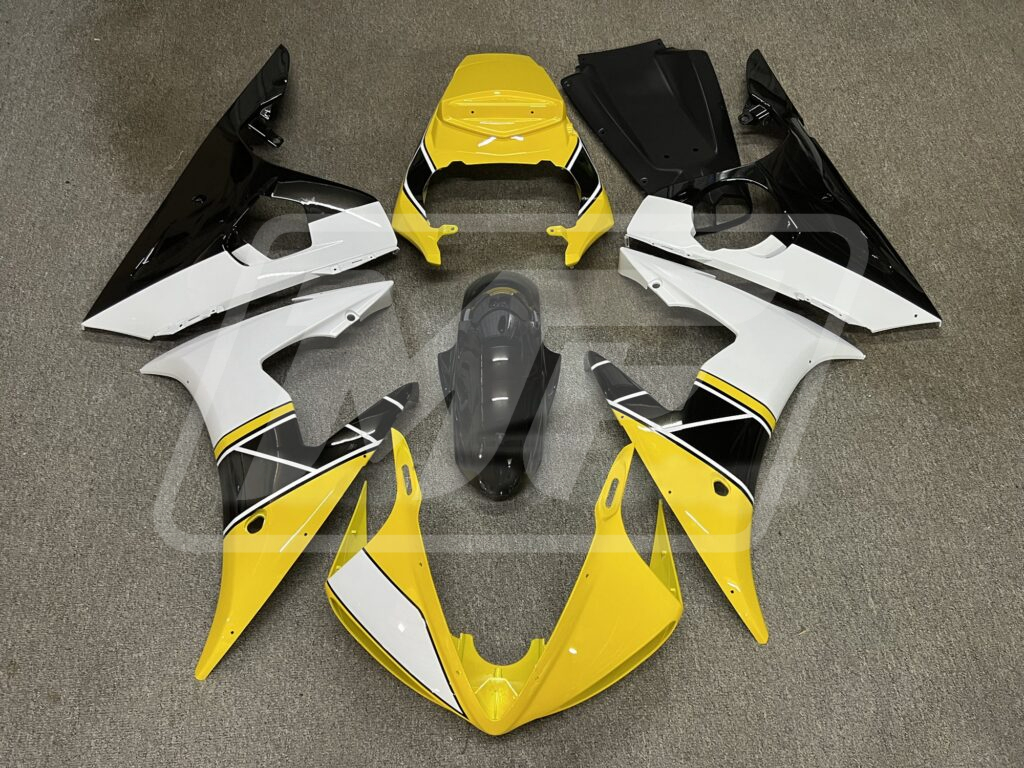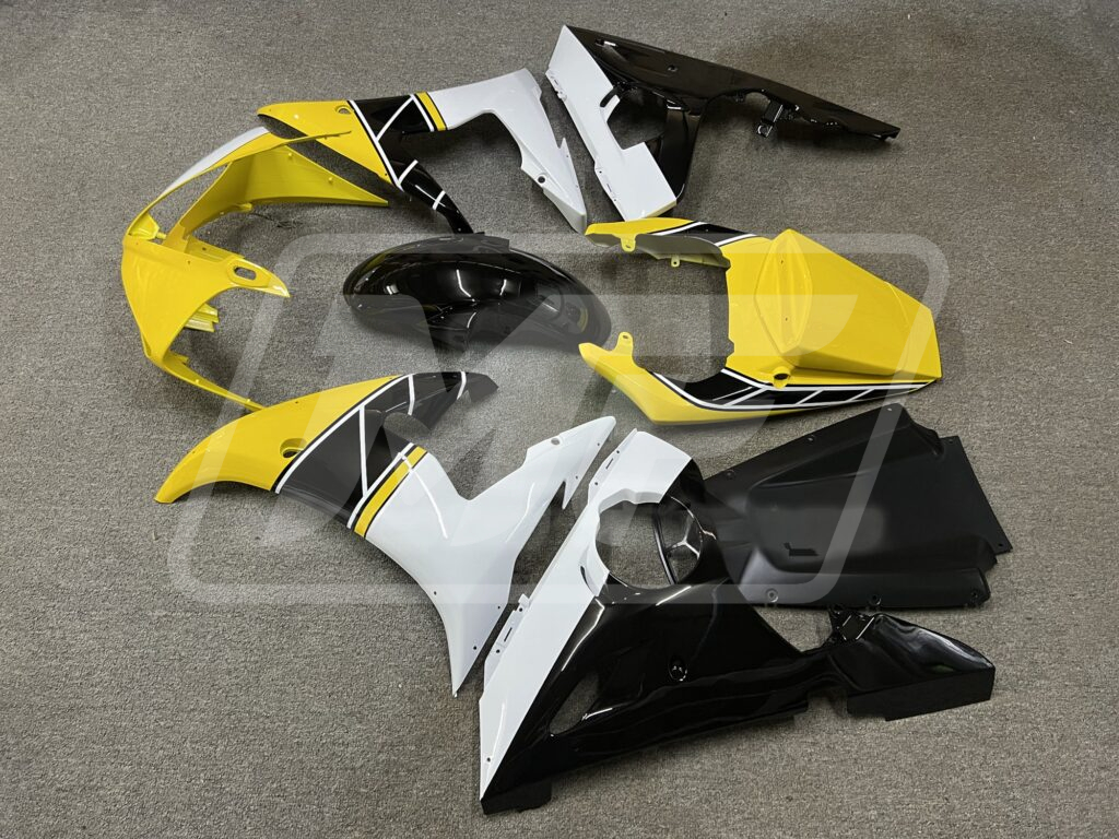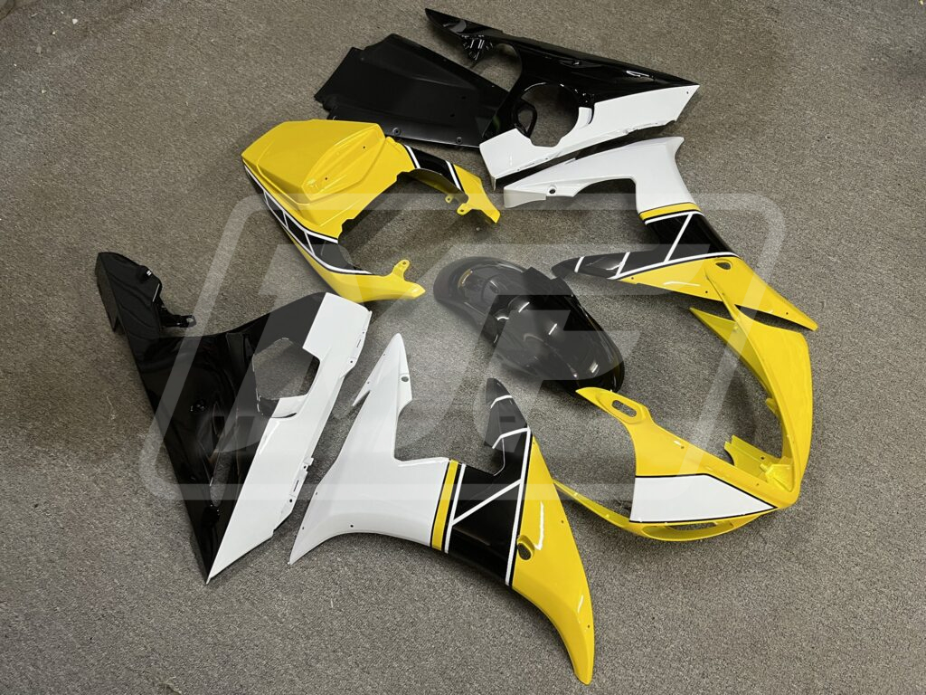 Yamaha R6 2003-2004 Gloss Black & Yellow with White ABS Fairings | Monster Fairings