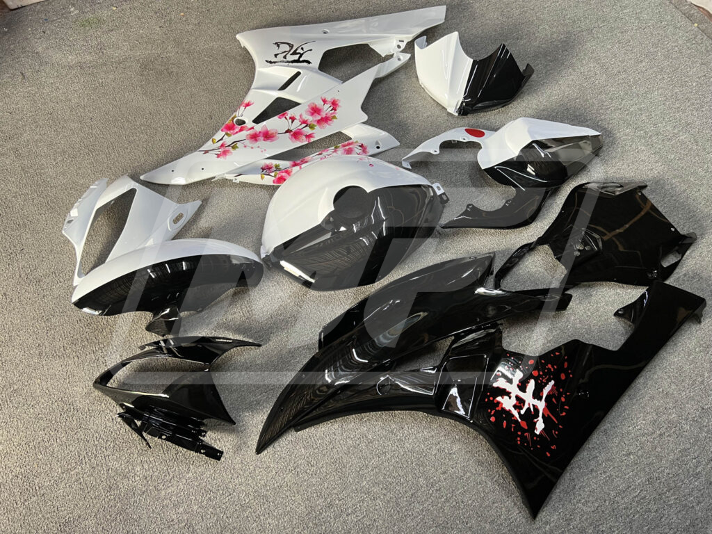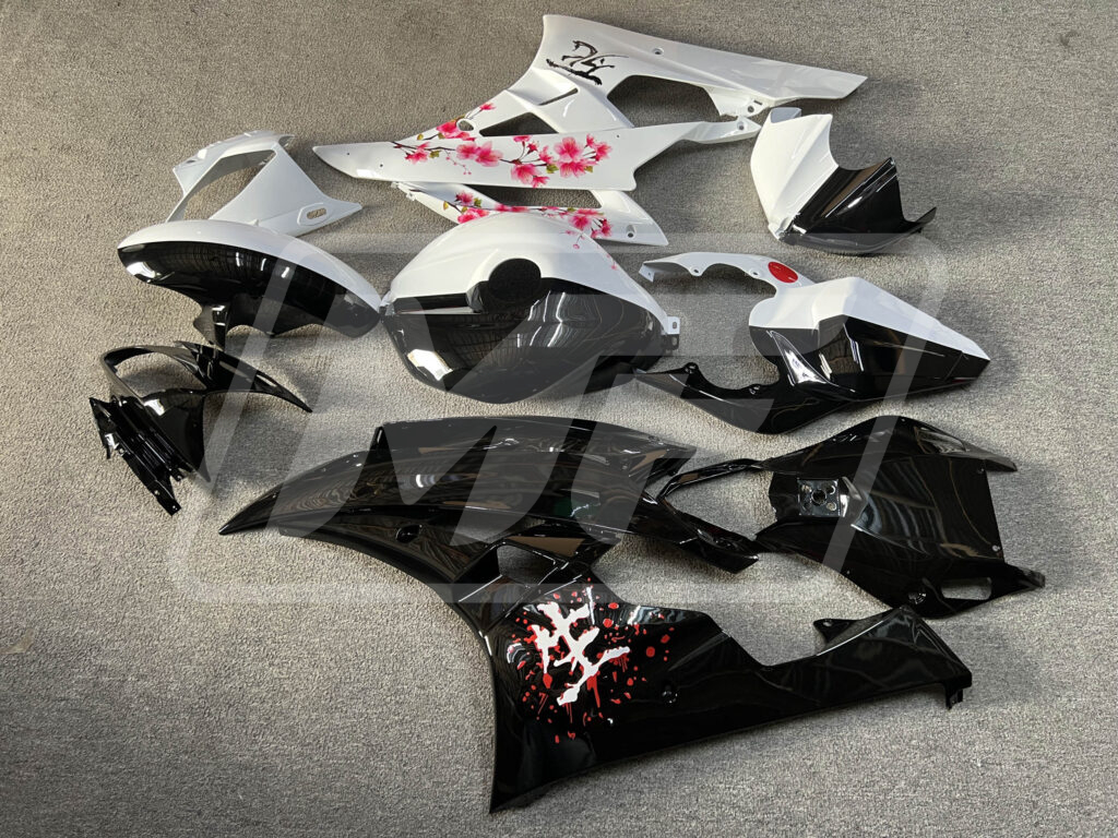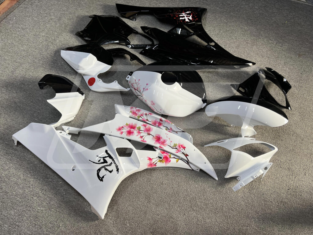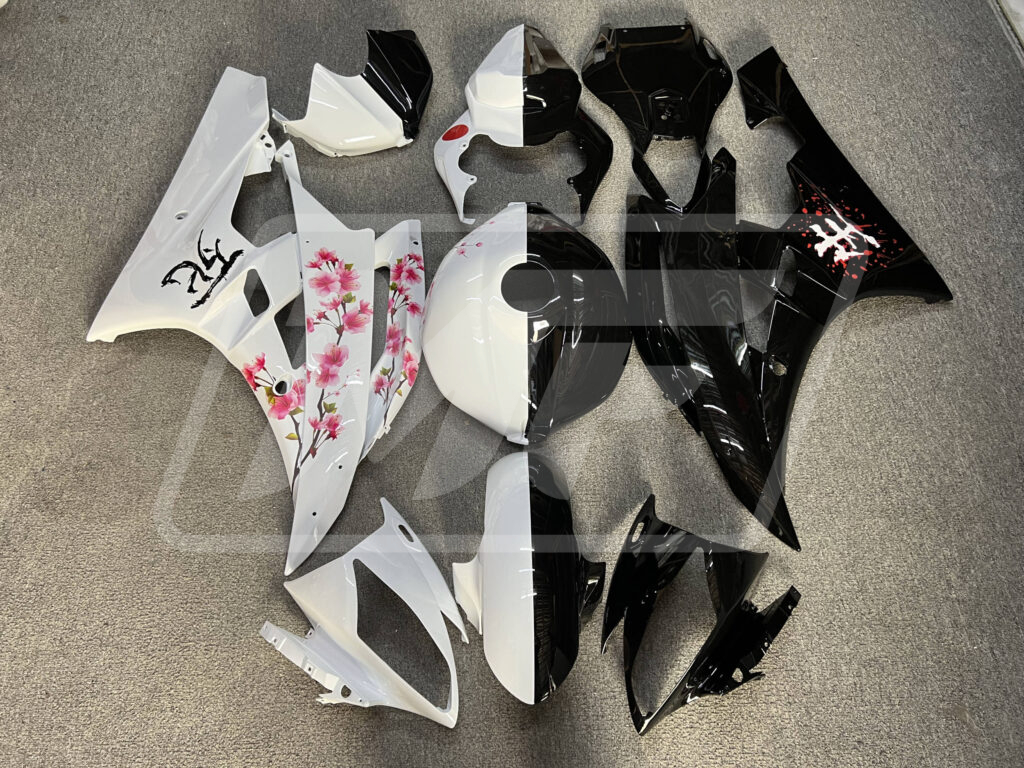 Yamaha R6 2006-2007 Gloss Black & White Cherry Blossom Split ABS Fairings | Monster Fairings