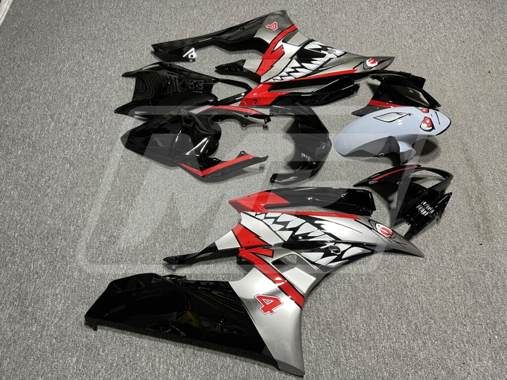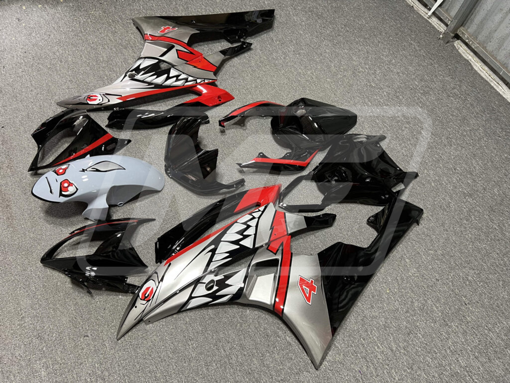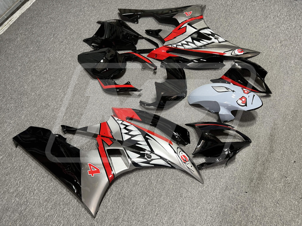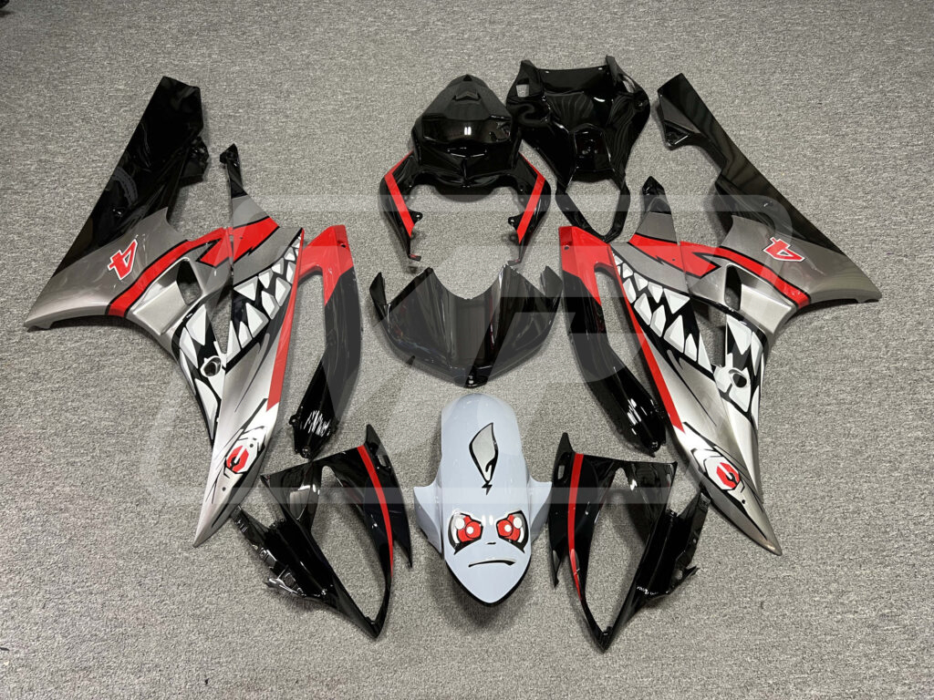 Yamaha R6 2006-2007 Gloss Silver & Black with Red Shark ABS Fairings | Monster Fairings