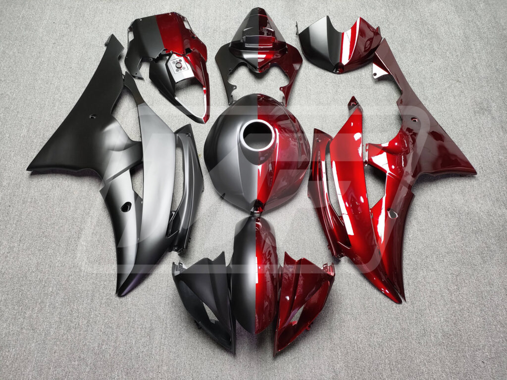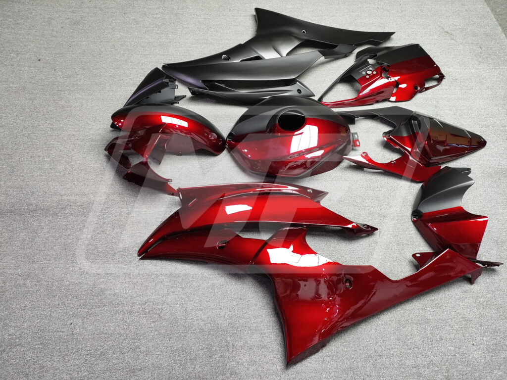 Yamaha R6 2008-2016 Matte Black & Gloss Candy Red Split ABS Fairings | Monster Fairings