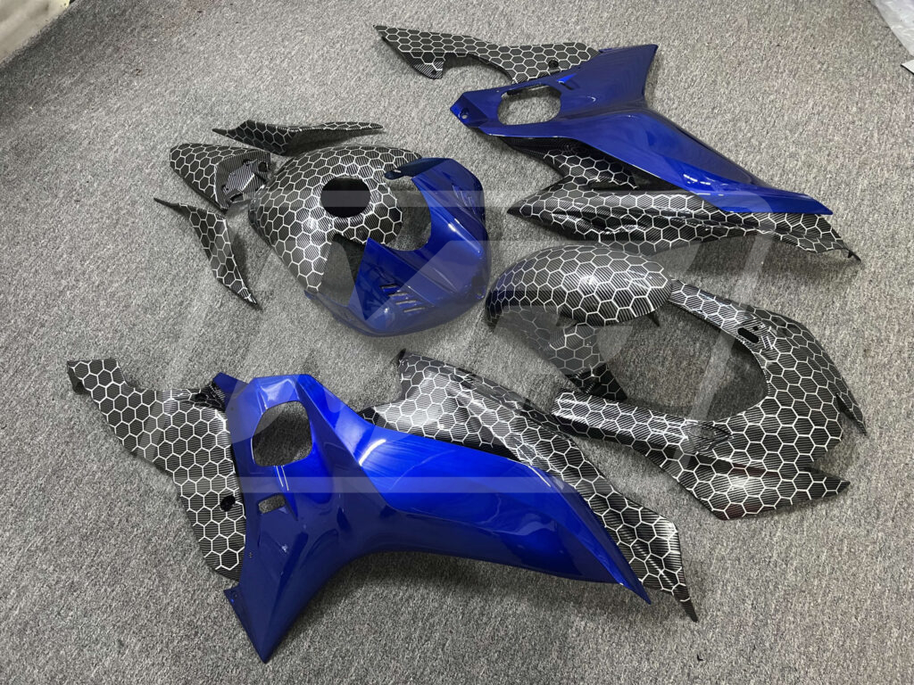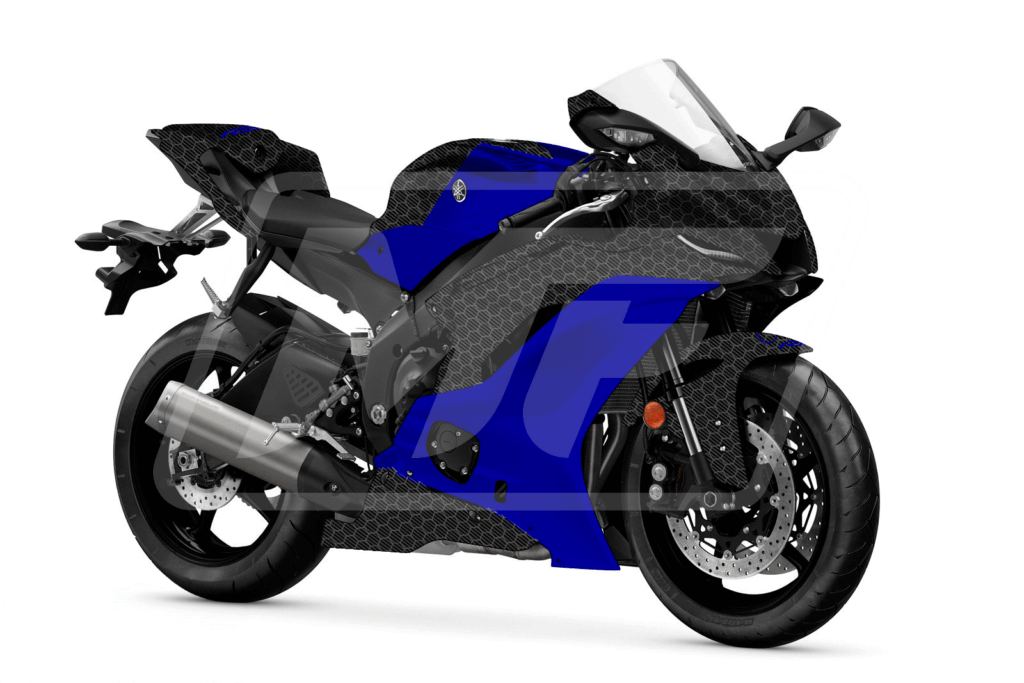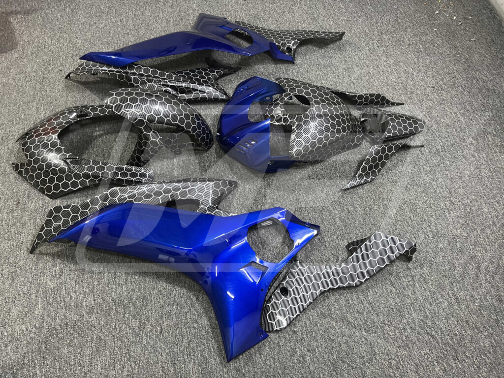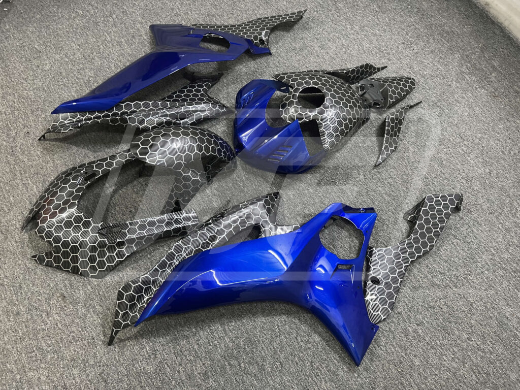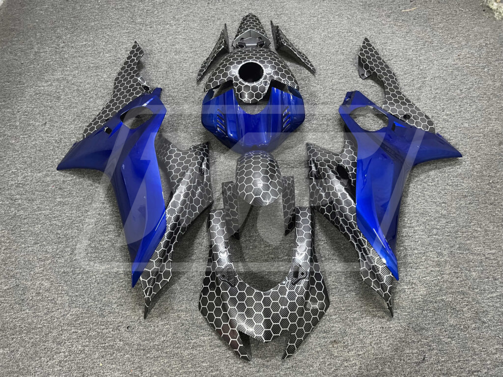 Yamaha R6 2017 - 2022 ABS fairings, Gloss Carbon Fiber Honeycomb & Blue - high - quality motorcycle kit by Monster Fairings