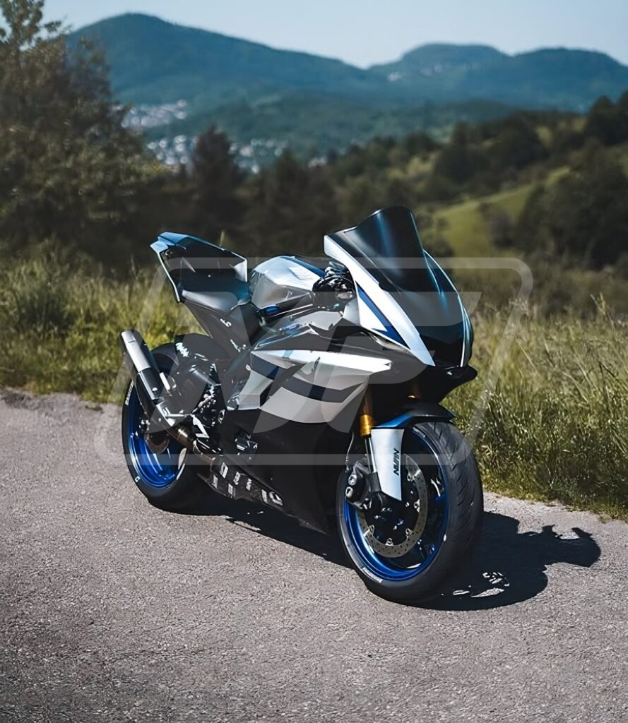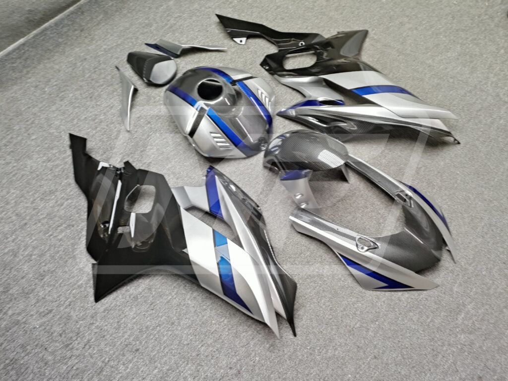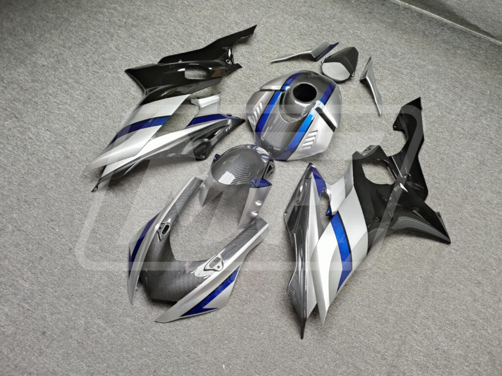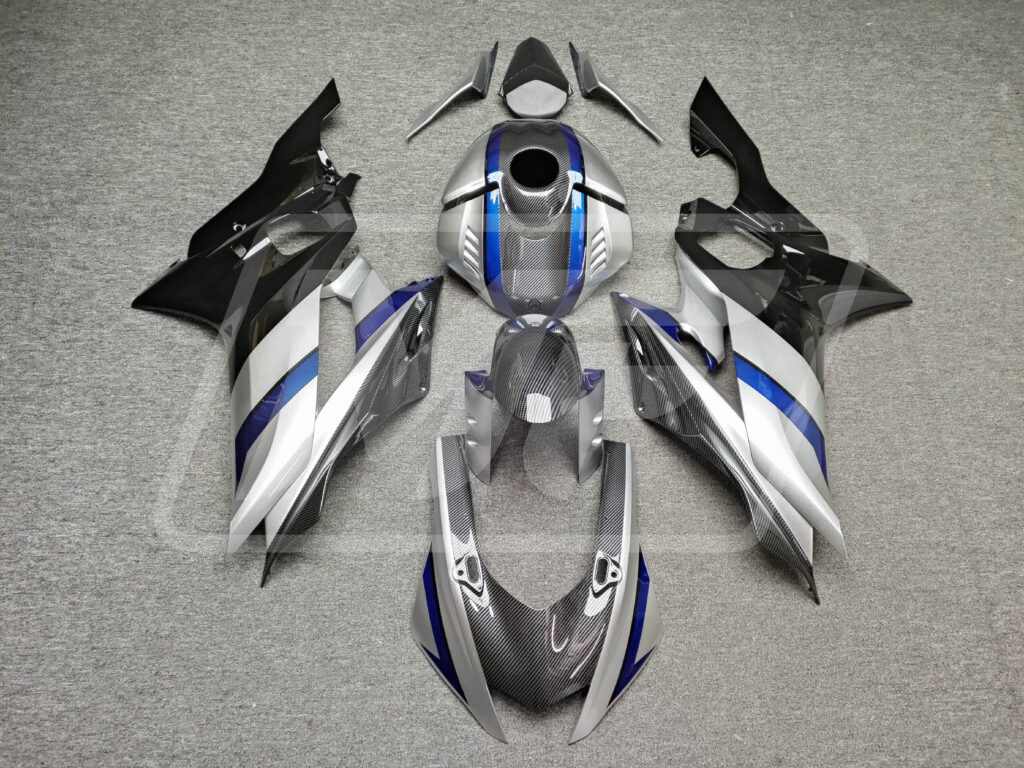 Yamaha R6 2017-2022 Gloss Silver with Black & Blue With Carbon Fiber Style ABS Fairings | Monster Fairings