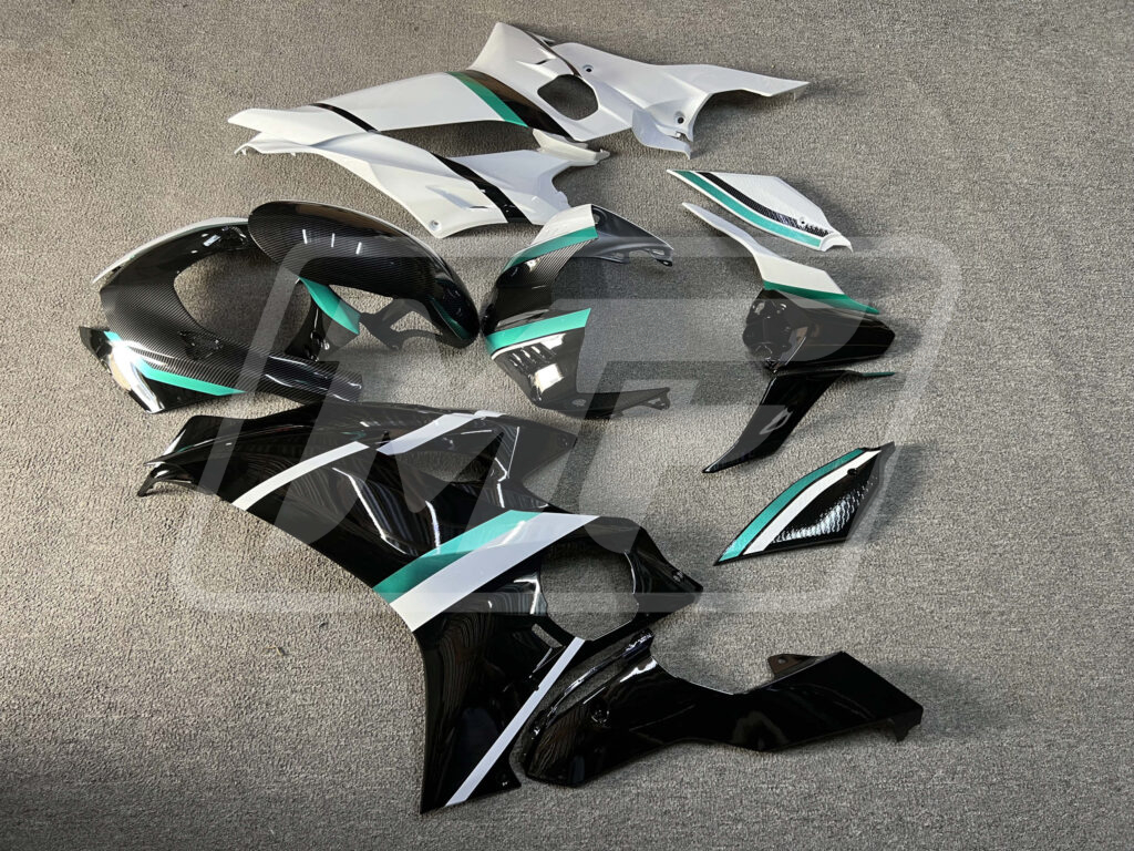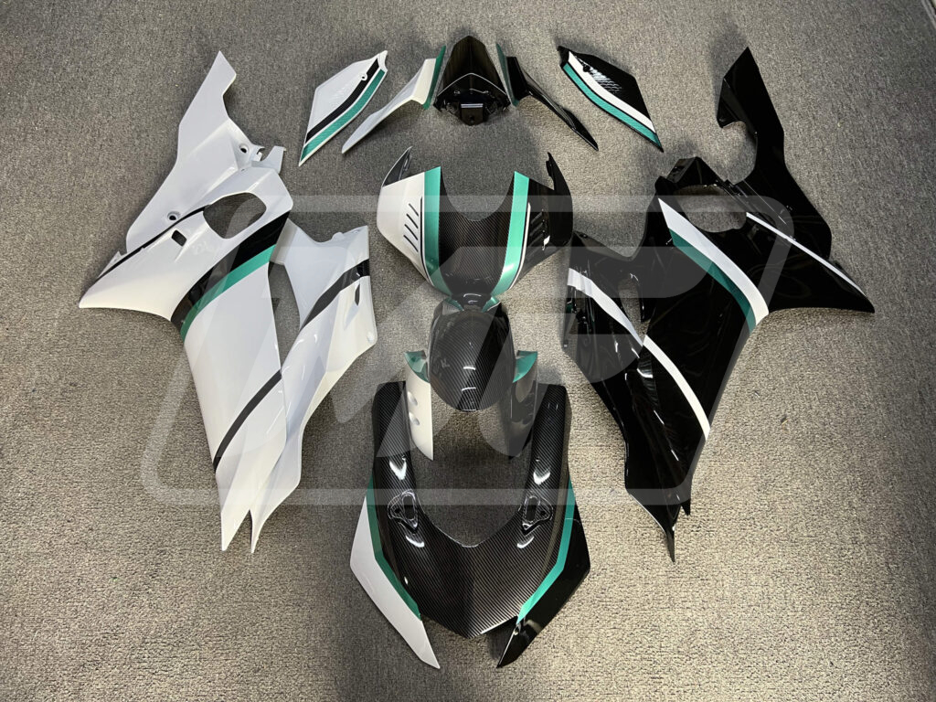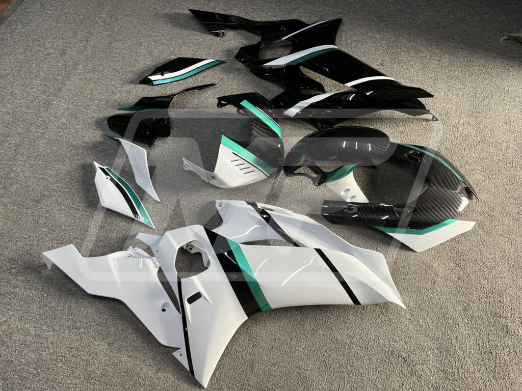 Yamaha R6 2017-2022 Split Carbon Style Teal Trim ABS Fairings | Monster Fairings