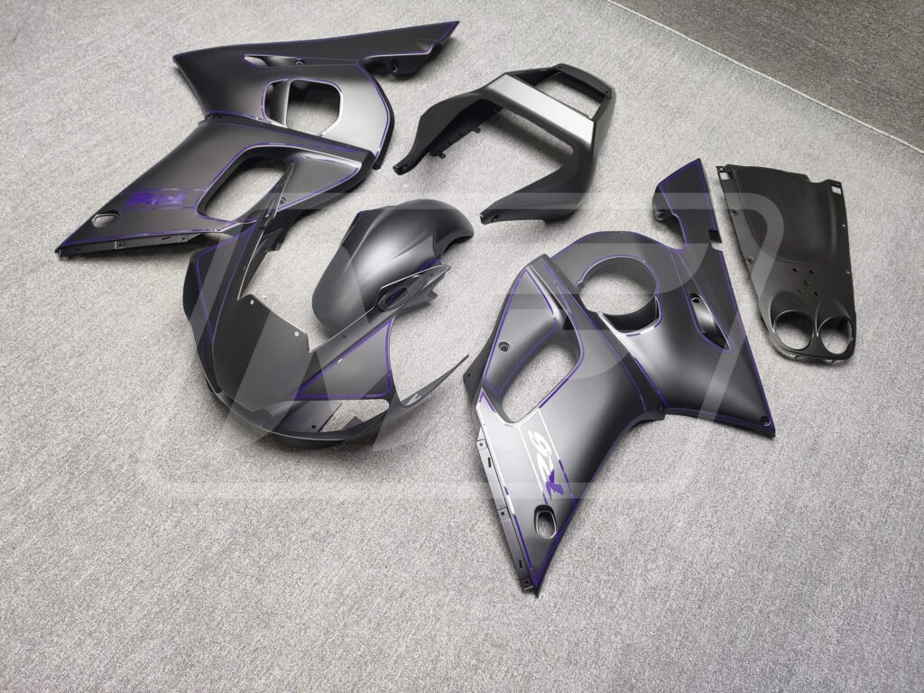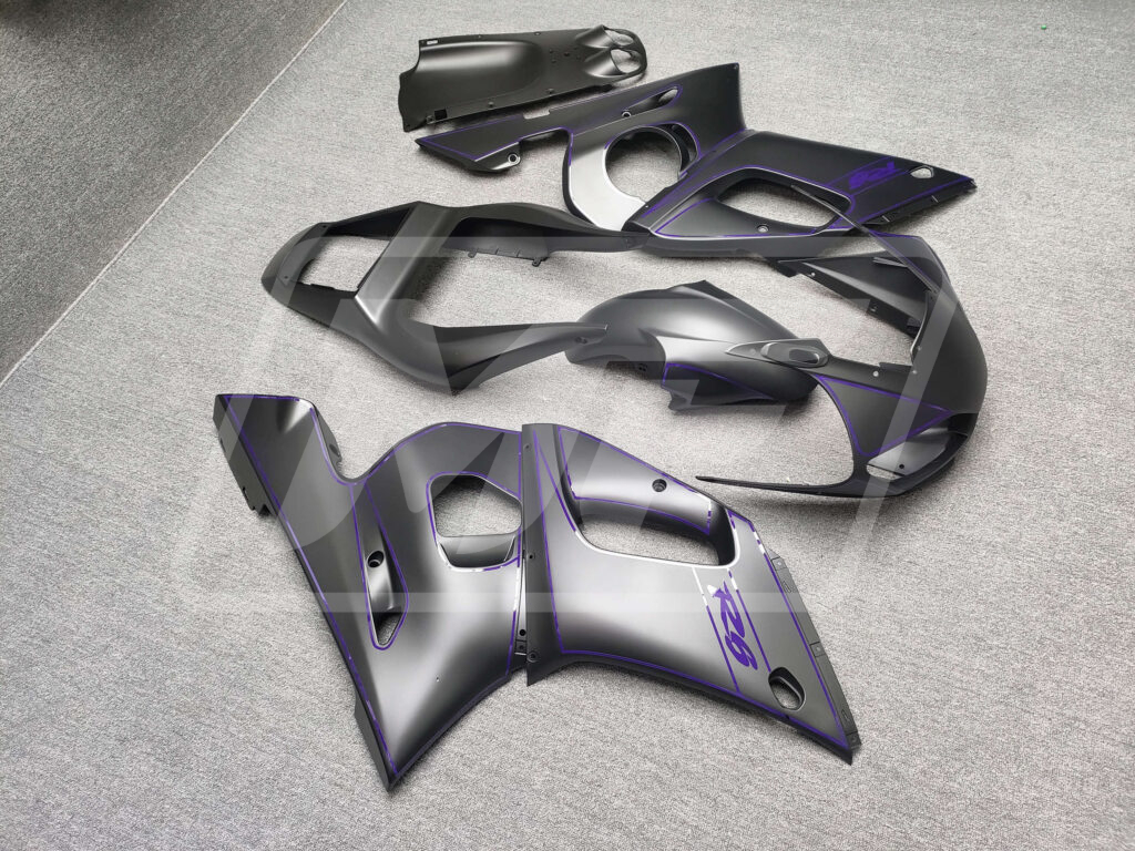 Yamaha R6 1998-2002 Matte Black with Purple ABS Fairings | Monster Fairings