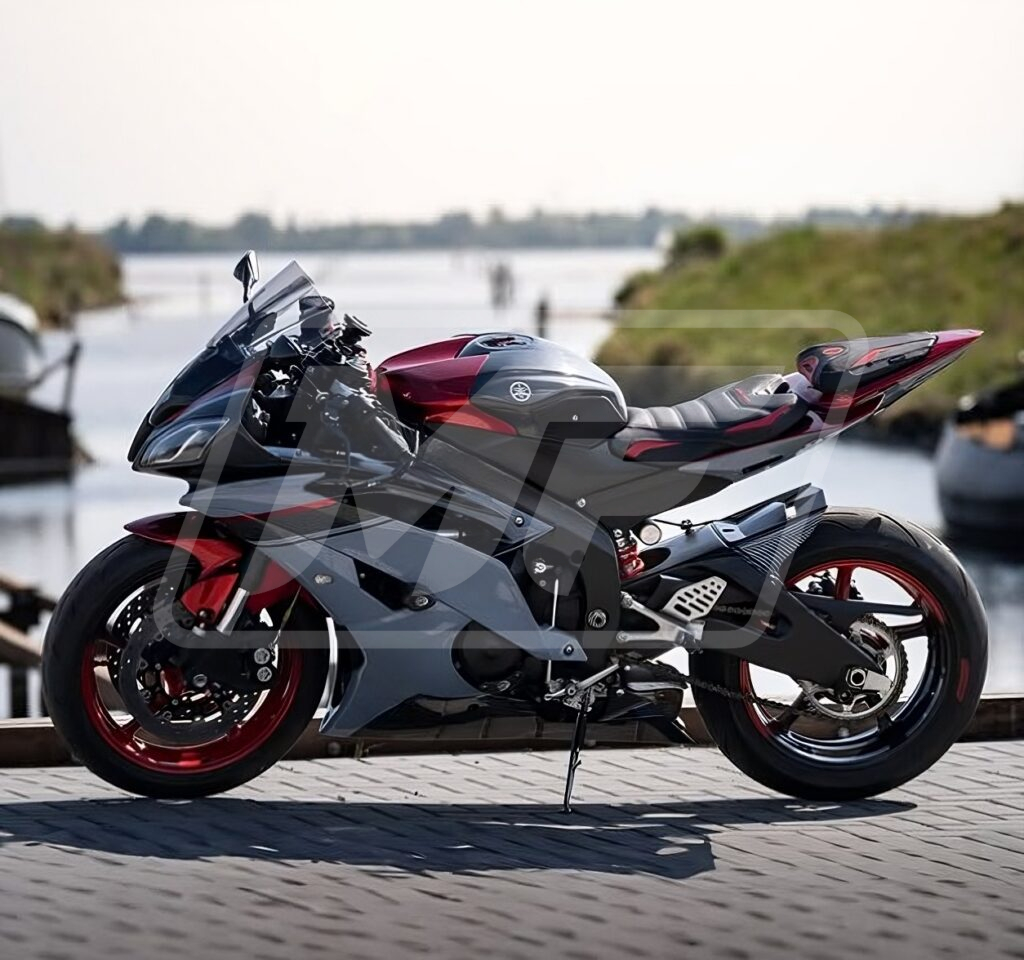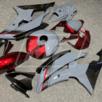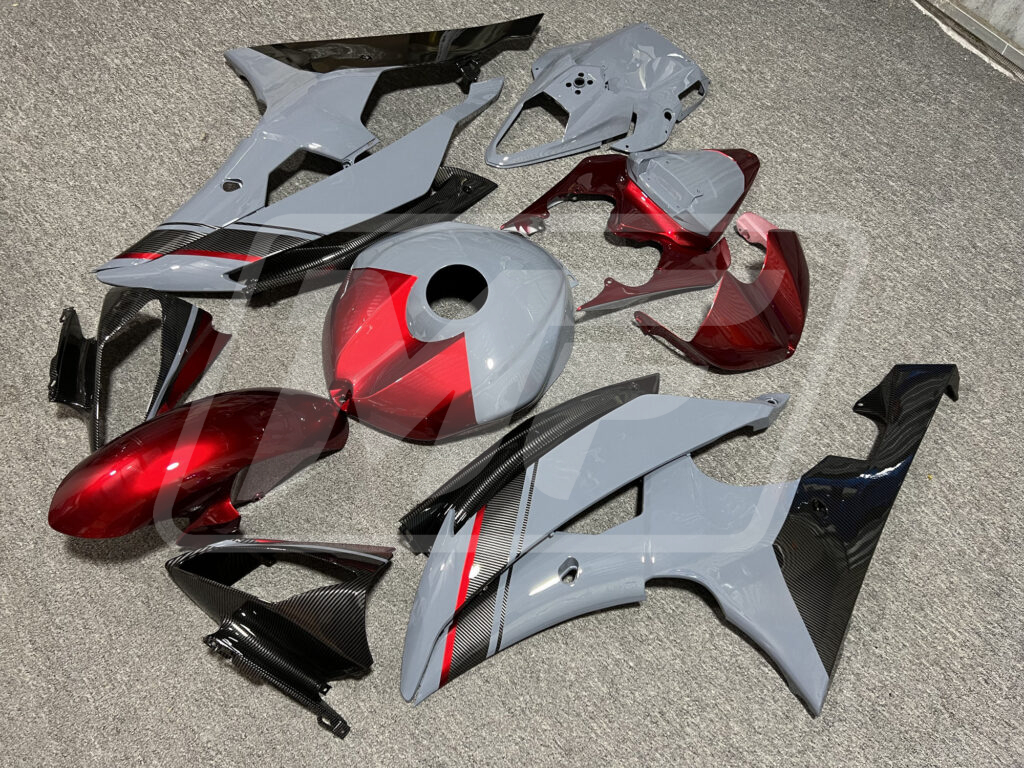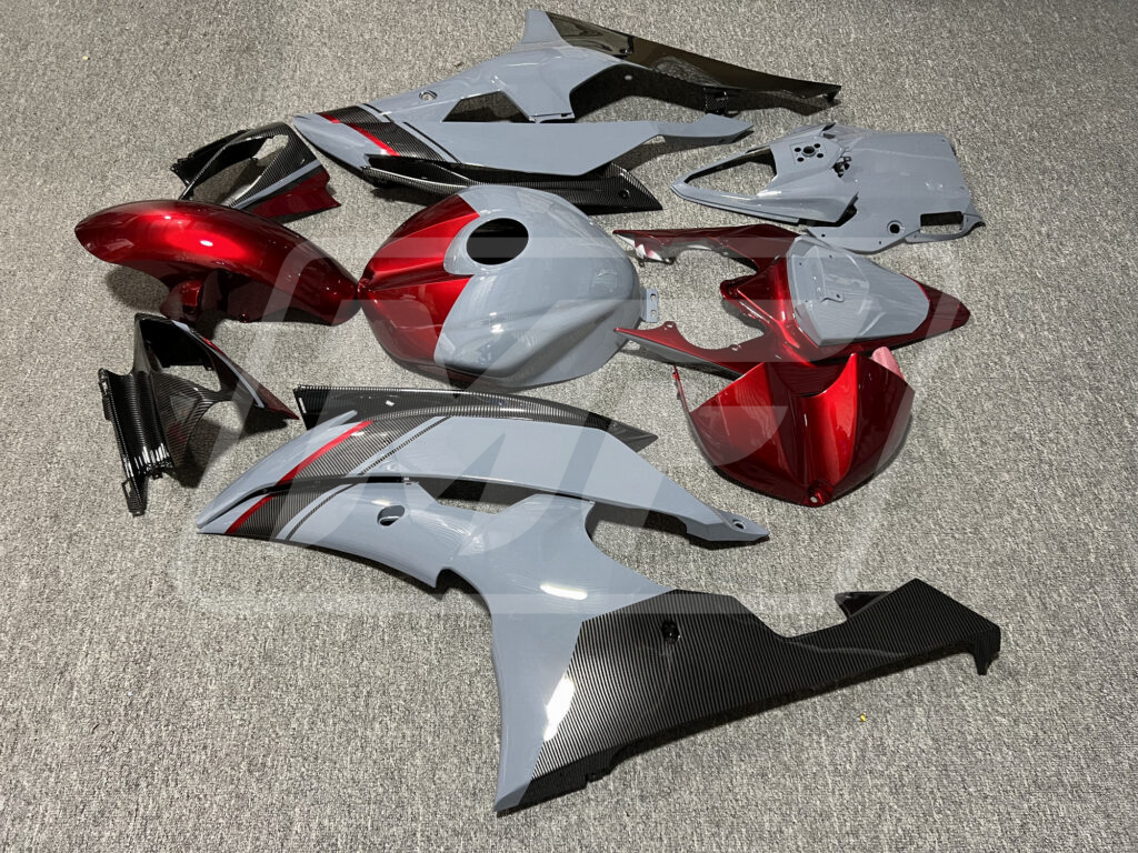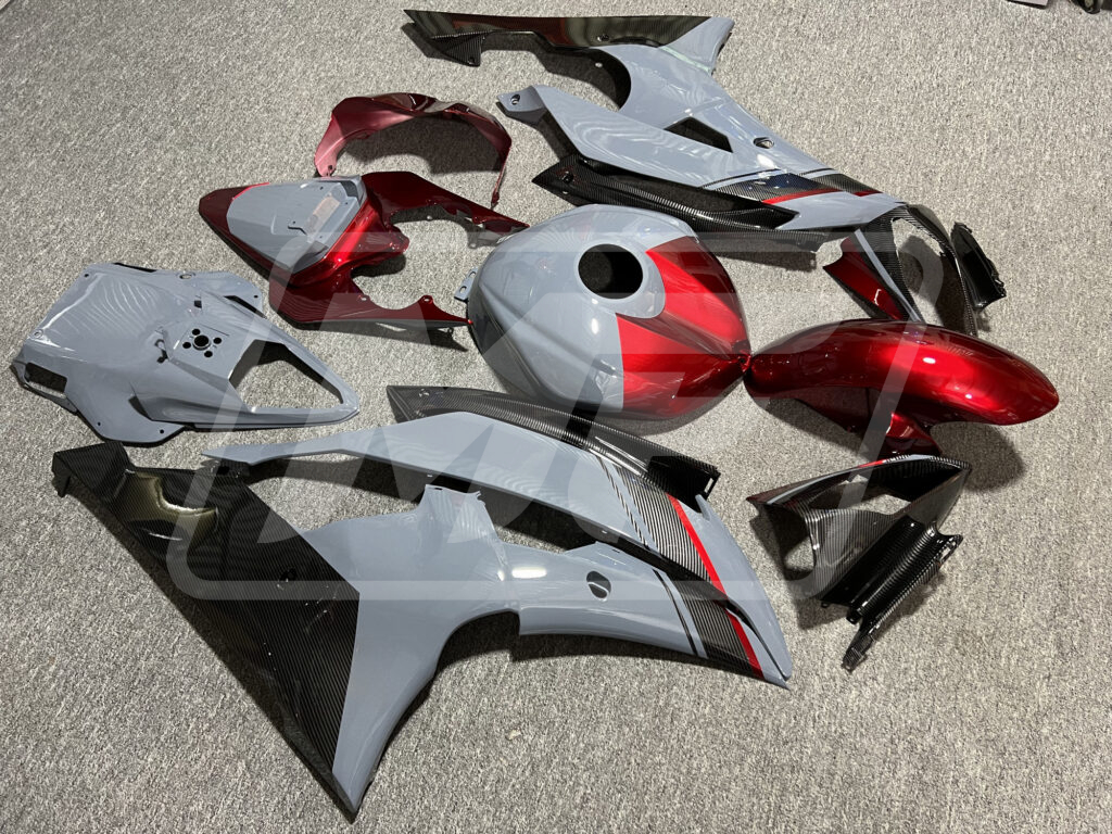Yamaha R6 2008-2016 Gloss Nardo Gray & Candy Red with Carbon Fiber Style ABS Fairings | Monster Fairings