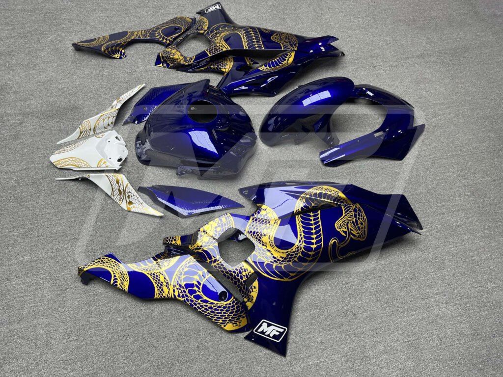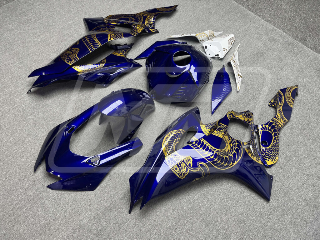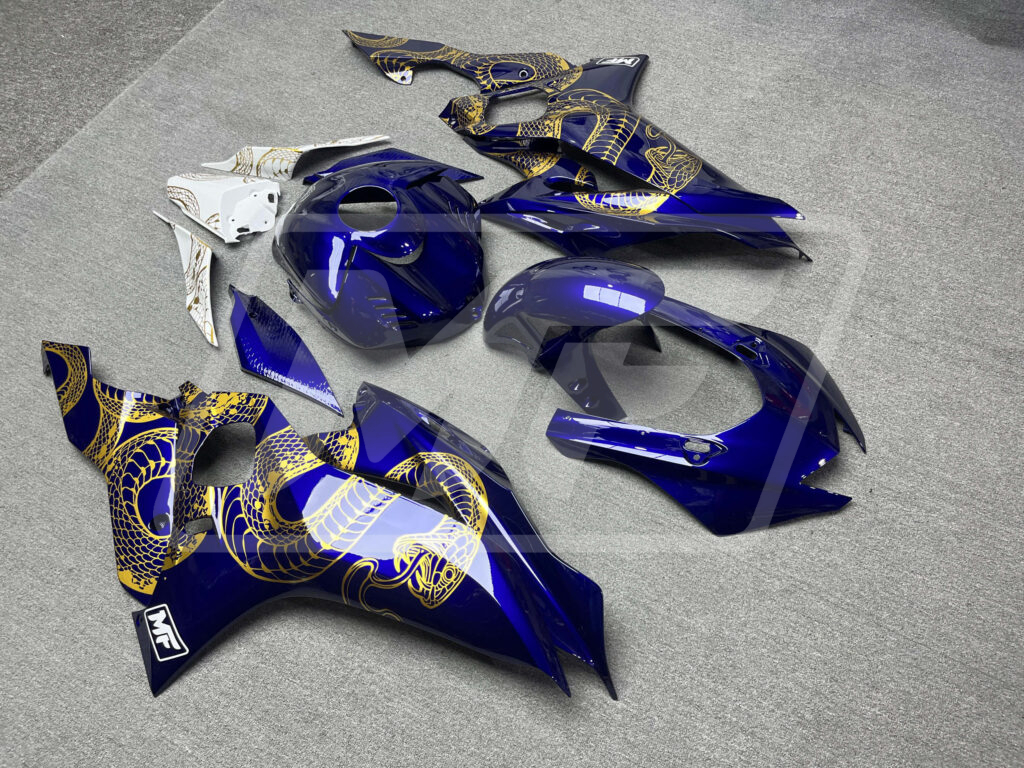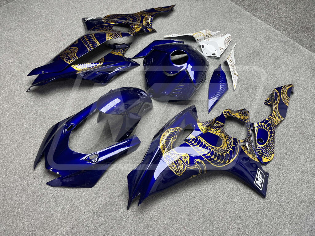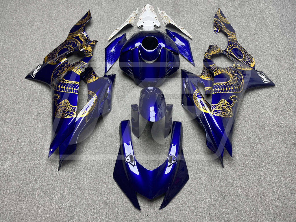 Yamaha R6 2017-2022 Gloss Blue & White with Gold Snake ABS Fairings | Monster Fairings