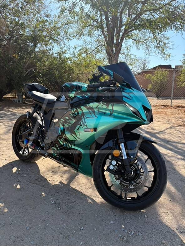 2021 - 2025 Yamaha R7 Gloss Black & Emerald Green Shattered Split fairing set - ABS injection, custom painted by Monster Fairings