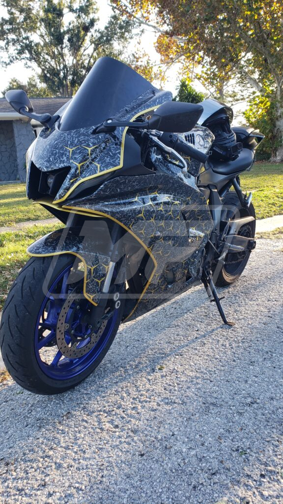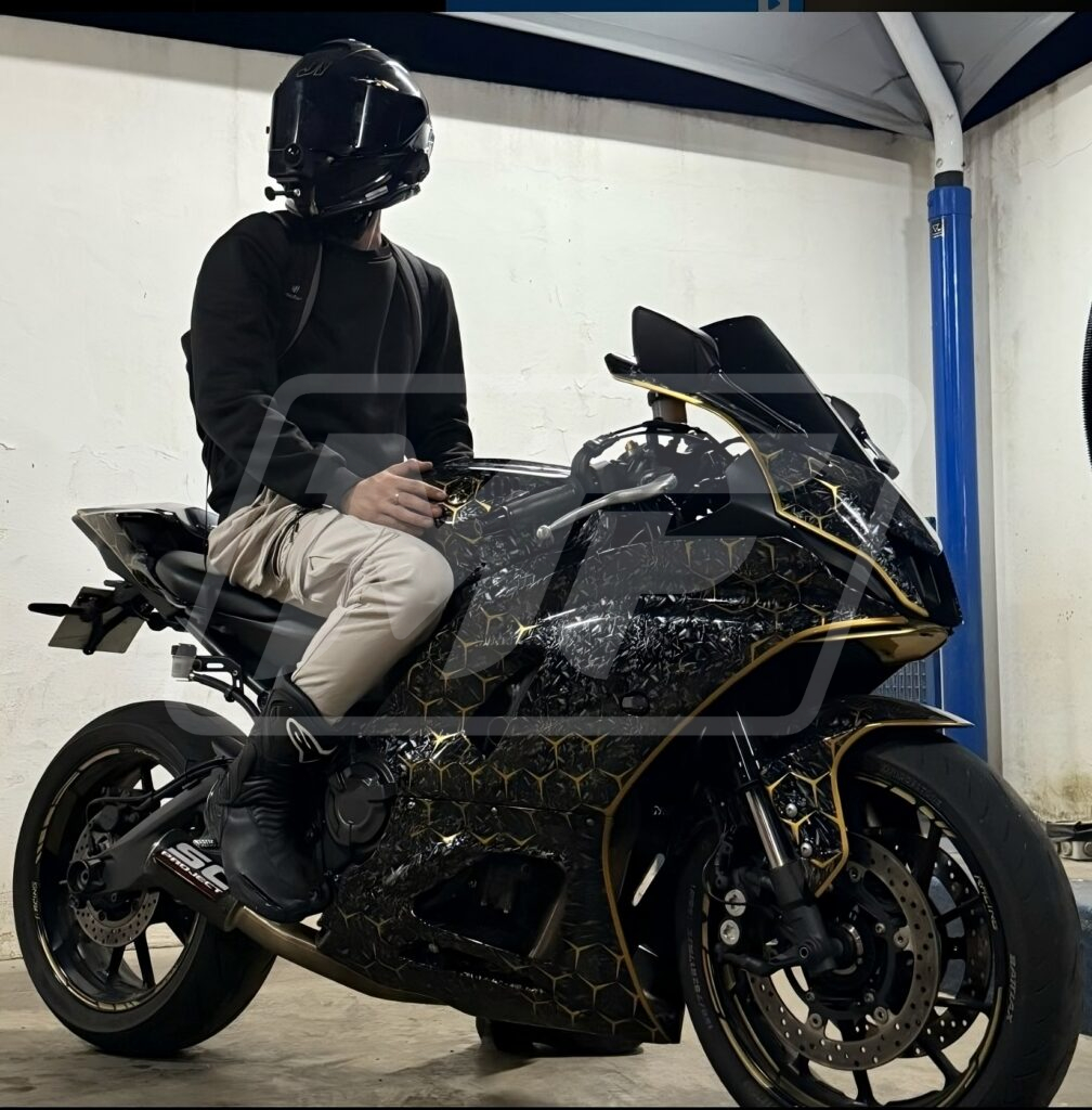 Yamaha R7 2021-2025 Gloss Forged Carbon Fiber Style with Gold Honeycomb ABS Fairings | Monster Fairings