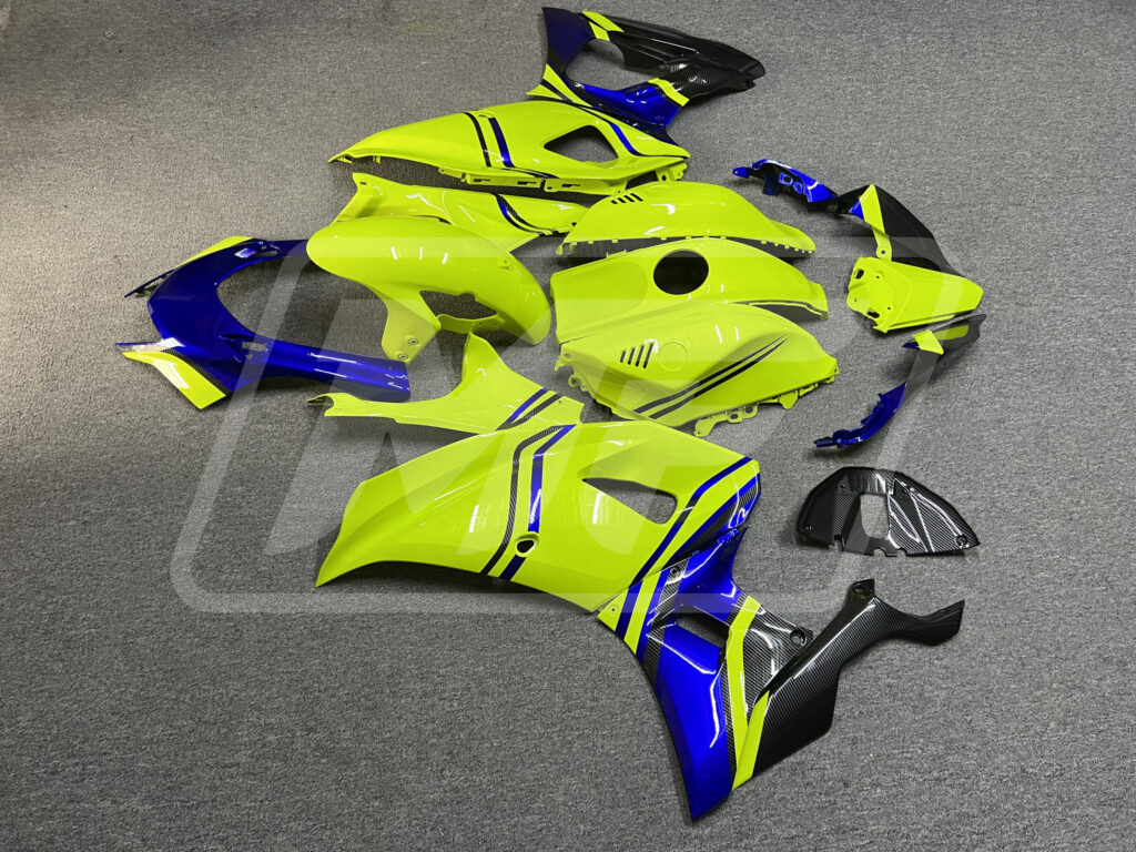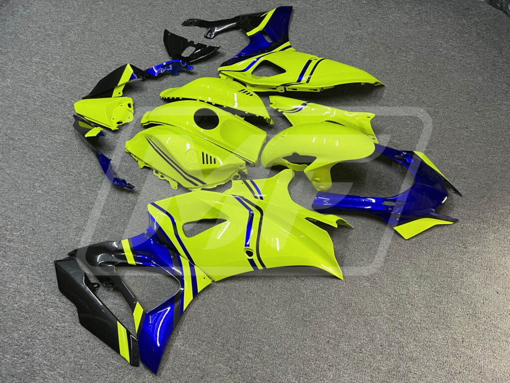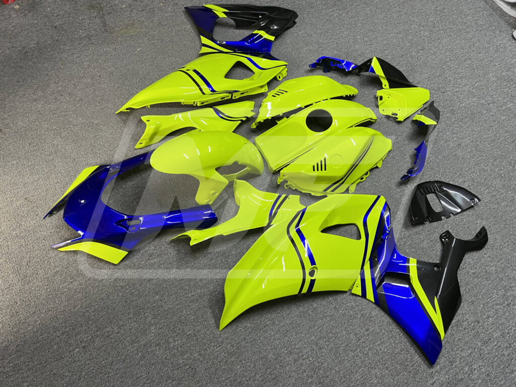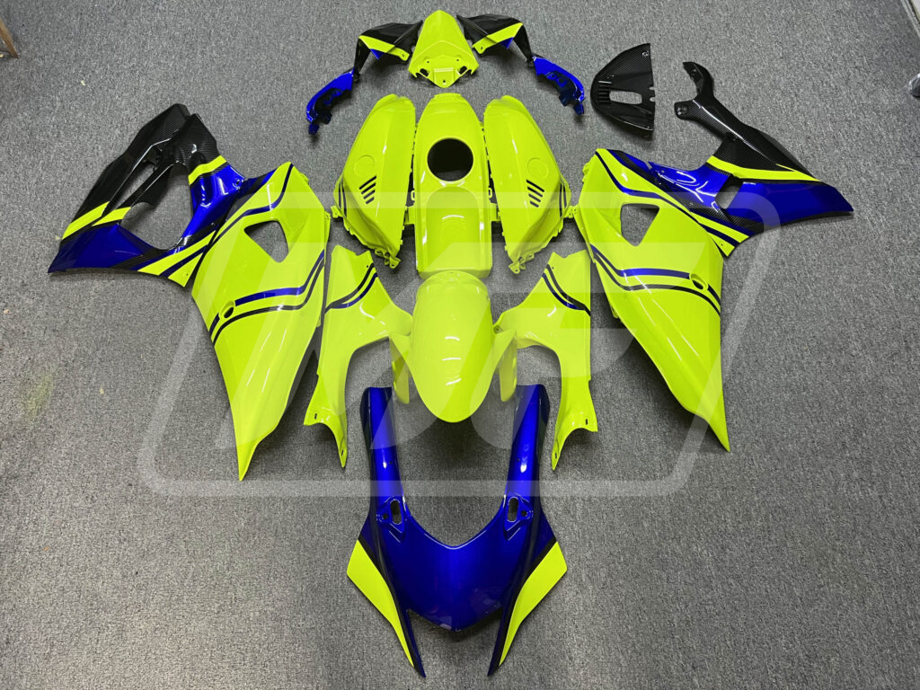 Yamaha R7 2021-2025 Gloss High Vis Yellow & Blue With Carbon Fiber Style ABS Fairings | Monster Fairings