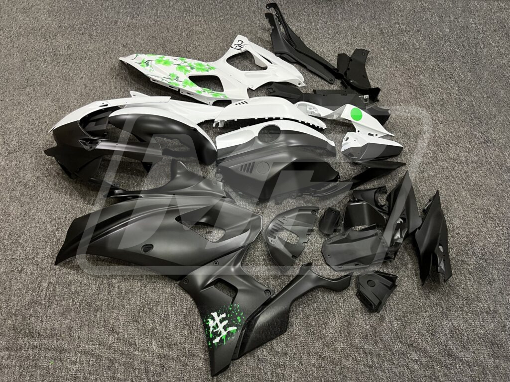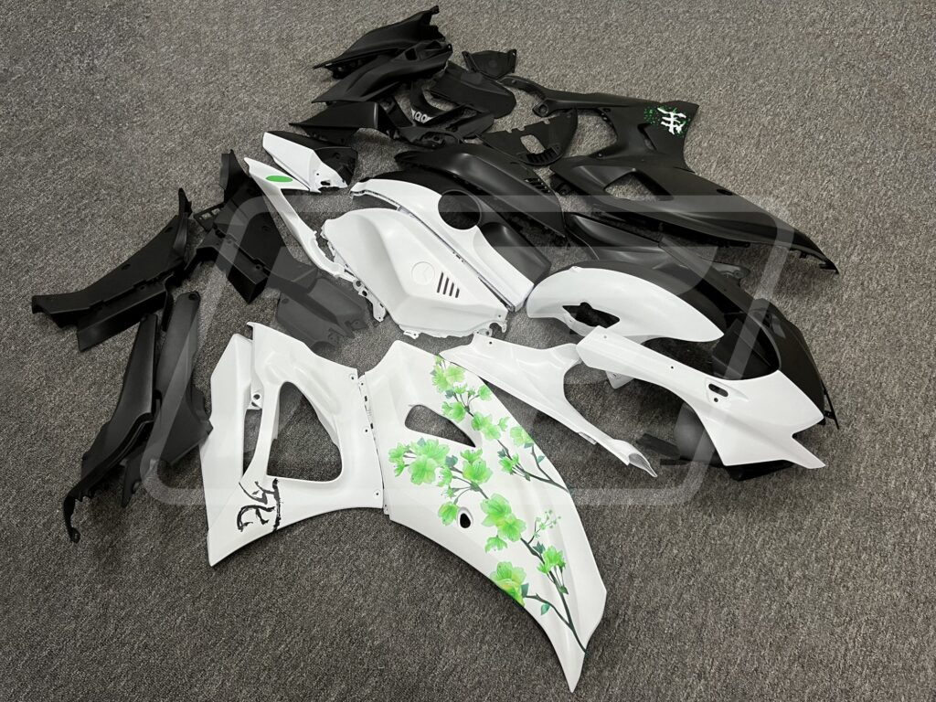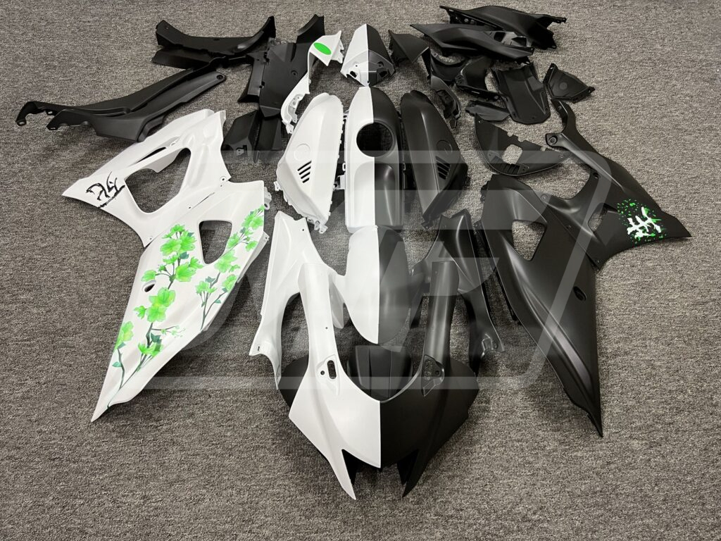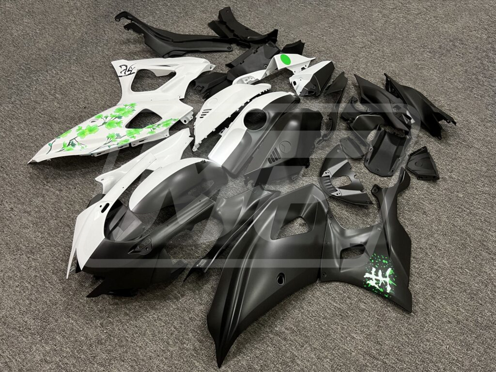 Yamaha R7 2021-2025 Matte Black & White Green Cherry Blossom Split ABS Fairings | Monster Fairings